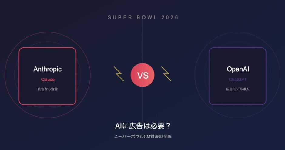 2026年2月9日(日本時間)に開催されるアメリカ最大のスポーツイベント「スーパーボウル」。そのCM枠をめぐって、AI業界の二大巨頭が激しくぶつかっています。
