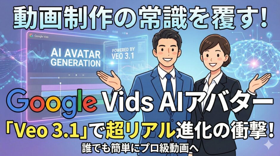 それは、Google Workspaceの動画作成・編集ツール「Google Vids」に搭載されているAIアバター機能が、Googleの最新動画生成モデル「Veo 3.1」によって大幅に強化されたというものです 。